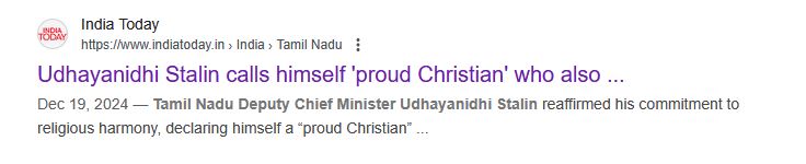While the Deputy chief minister of TN and son of Chief Minister Stalin confirms that is a born again Christian.